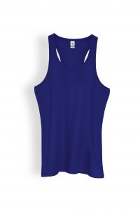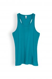 Camiseta entallada, con sisas y escote ribeteado, ancho y enrollado. Espalda estilo nadadora y costuras laterales. 160 g/m2.