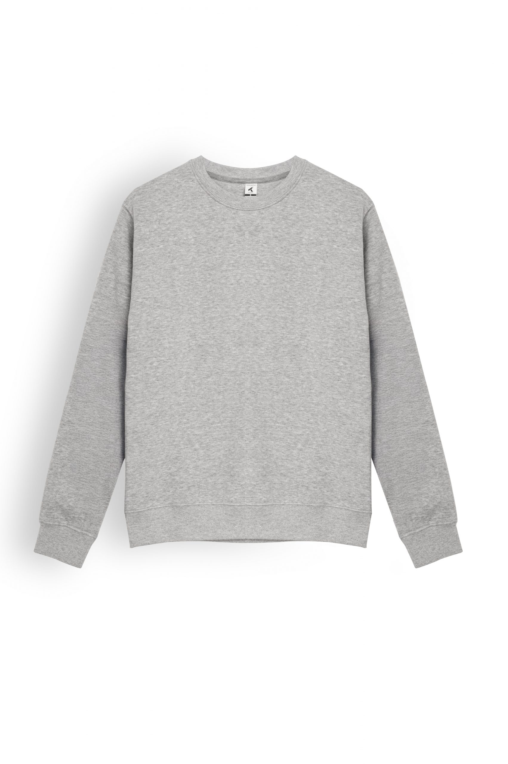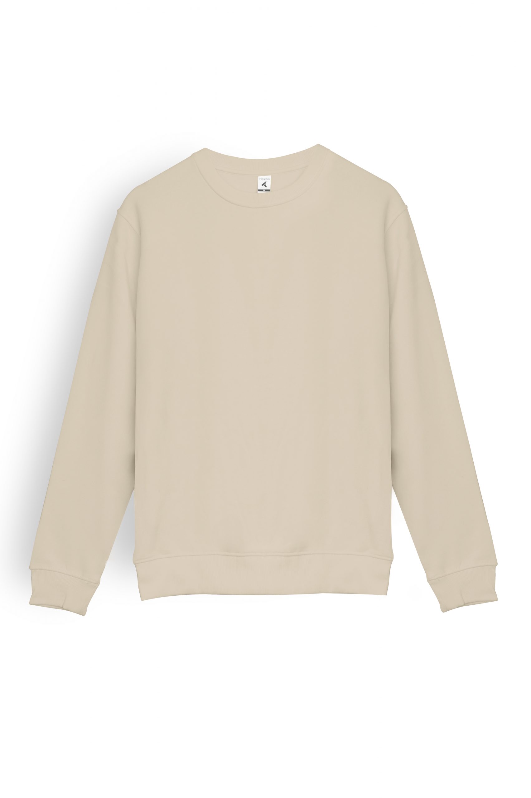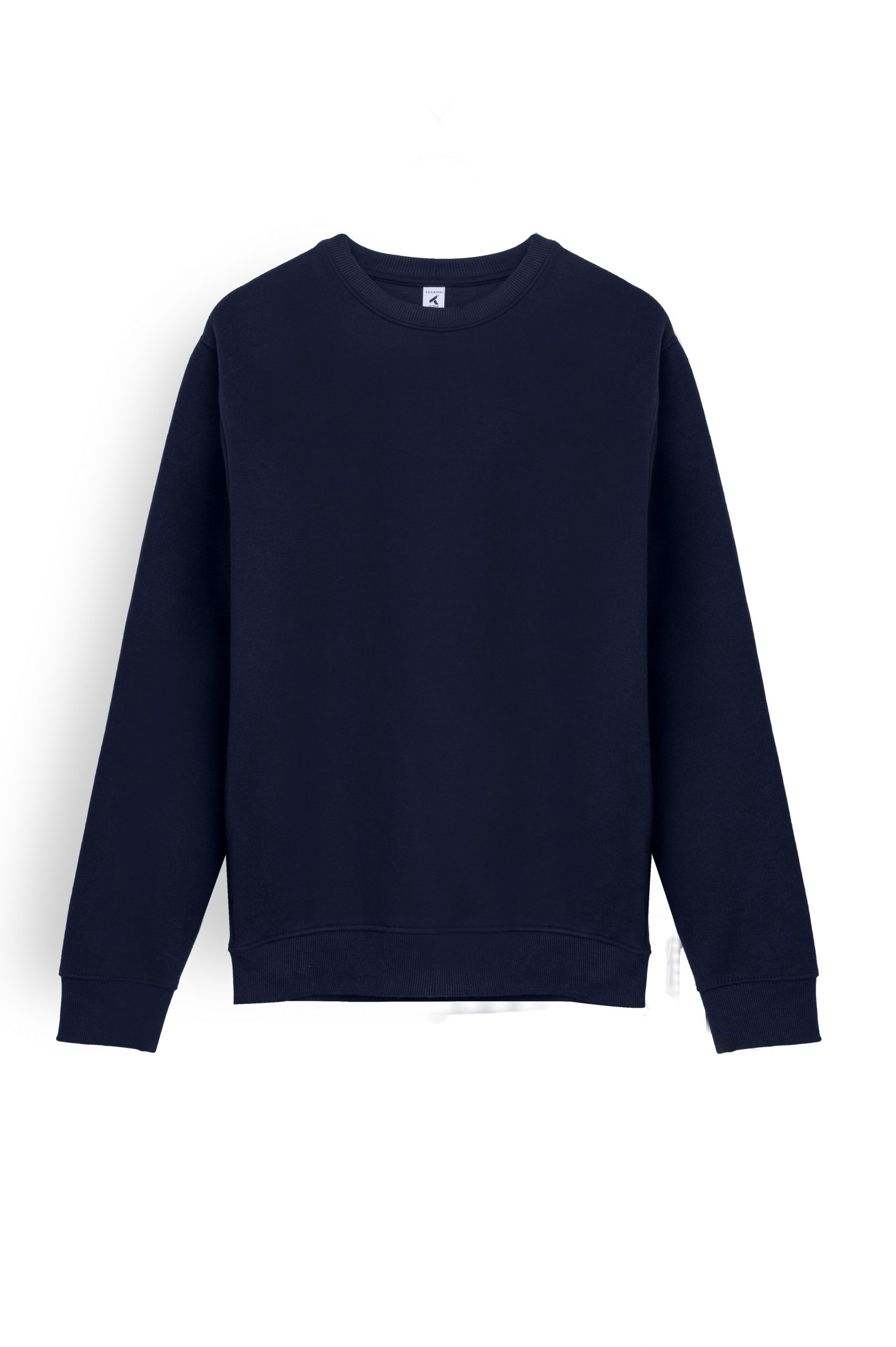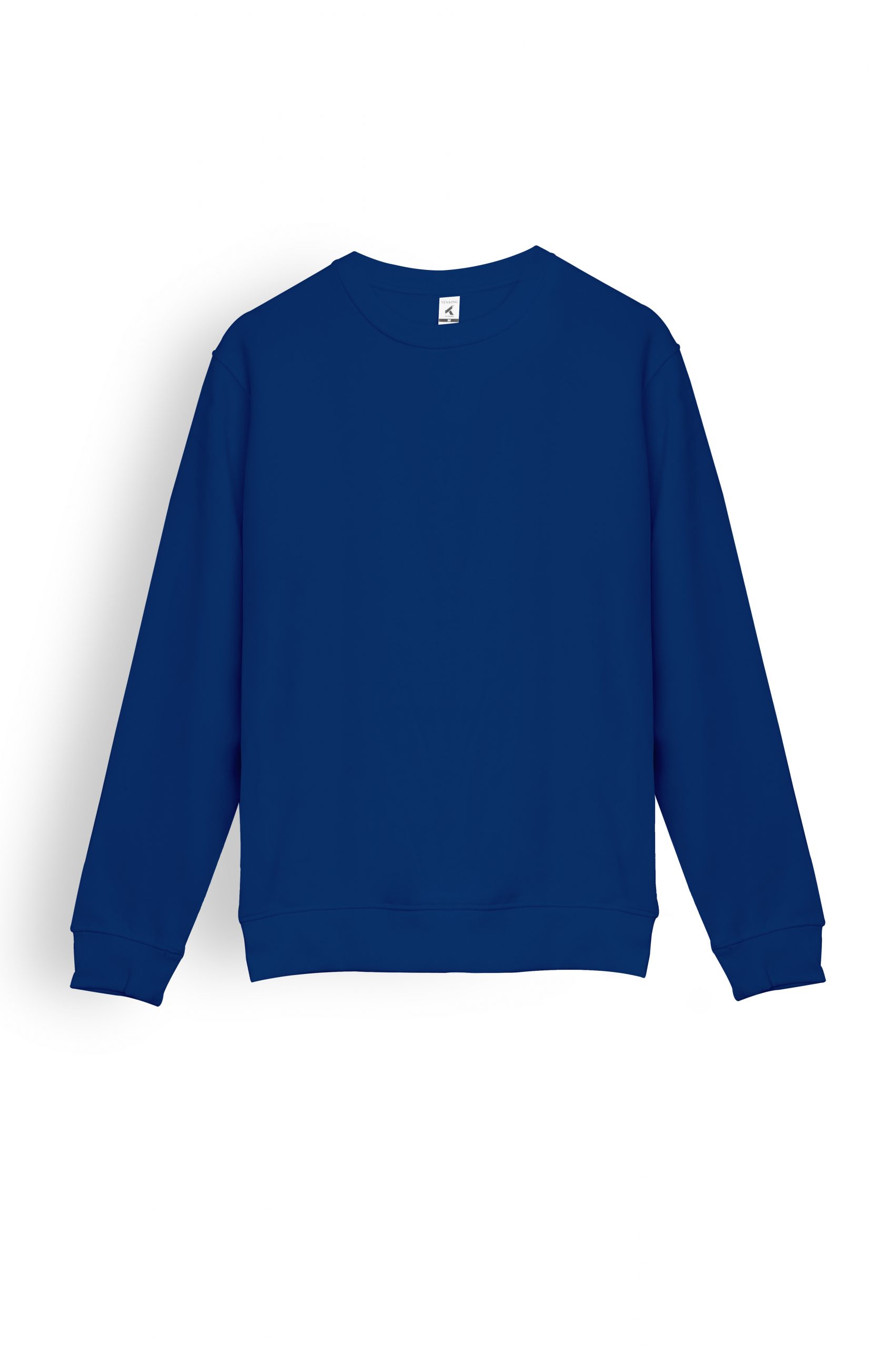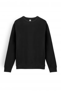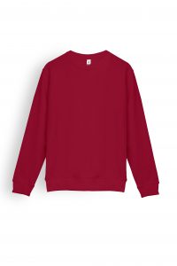 Sudadera unisex cuello redondo, Cubrecosturas reforzado en cuello. Puños y cinturilla de punto canalé 1×1 con elastano. Dentro con medio luna para estampación.